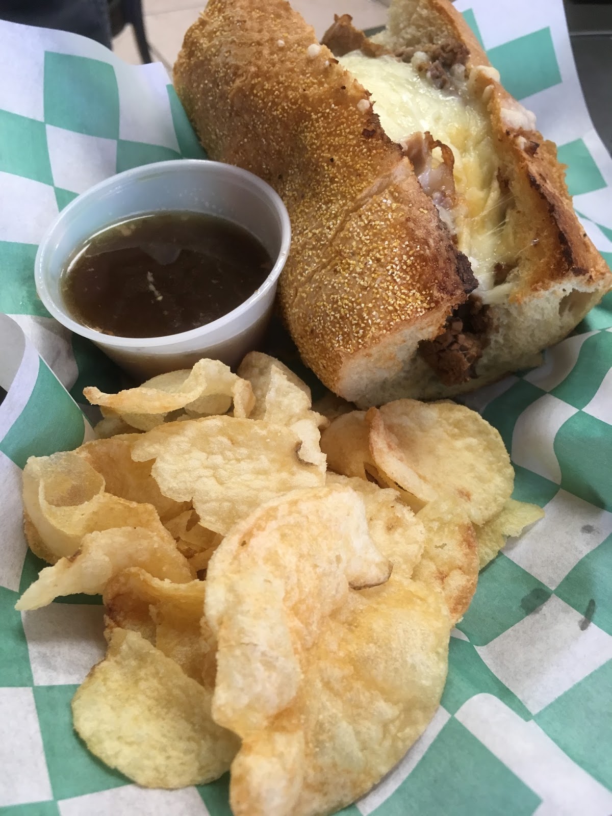 Al had a roast beef and melted cheese on a baguette with chips. He wasn't complaining either.