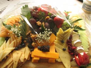 The possibilities are endless, let your tastes and imagination be your guide. The beauty of a cheese and fruit platter is that it requires little attention once it is put out. Just replenish anything that is popular and let the guests enjoy themselves.